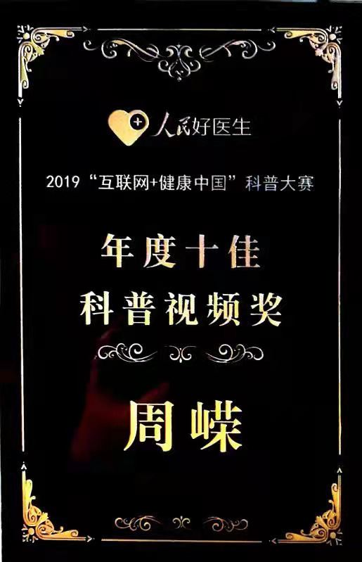 2020年 獲第二屆“互聯(lián)網+健康中國”科普大賽“科普達人獎”