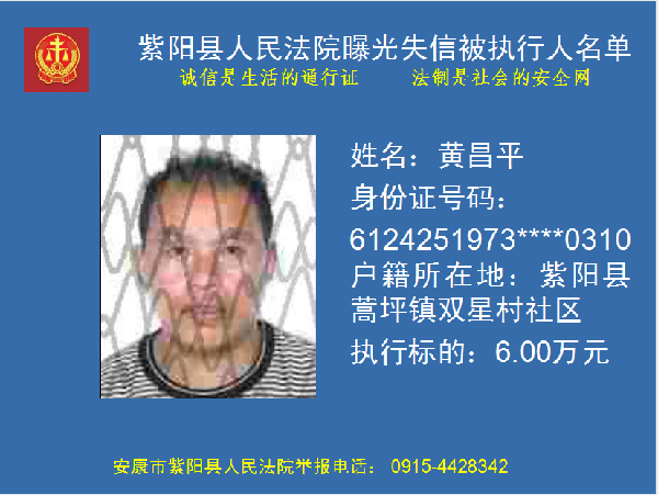 曝光失信 | 紫陽縣人民法院:關(guān)于敦促黃昌平履行法定義務(wù)的公告