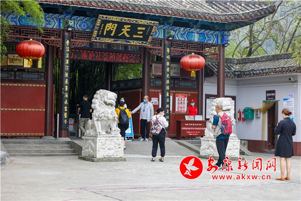 本網(wǎng)訊(記者 羅超)9月11日,在安康市香溪洞景區(qū)“三天門”外,不少市民、游客正在大門附近有序排隊,在不遠處,文明旅游相關(guān)標語設置在醒目位置,不少人依次通過閘機進入景區(qū)。