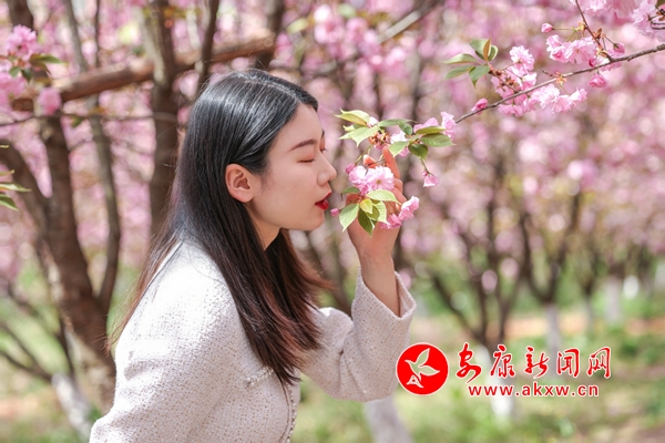 遠遠望去,一團團、一簇簇櫻花肆意地舒展著身姿,在風中輕輕顫動,爛漫而美麗,公園里不時吹來陣陣微風,撩撥起片片花瓣,任其在空中隨風散落,煞是好看,漫步其間,繽紛的“櫻花雨”伴著浮動的“櫻花香”,也能沉醉于花海之中。