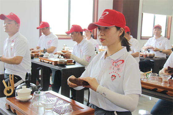 在隨后的炒茶和茶藝課上,大家更是興趣濃厚,在老師們耐心細(xì)致地講解引導(dǎo)下,大家一步一步動(dòng)手親為,在舒緩的音樂聲和高雅的氛圍中感受著茶文化的熏陶。