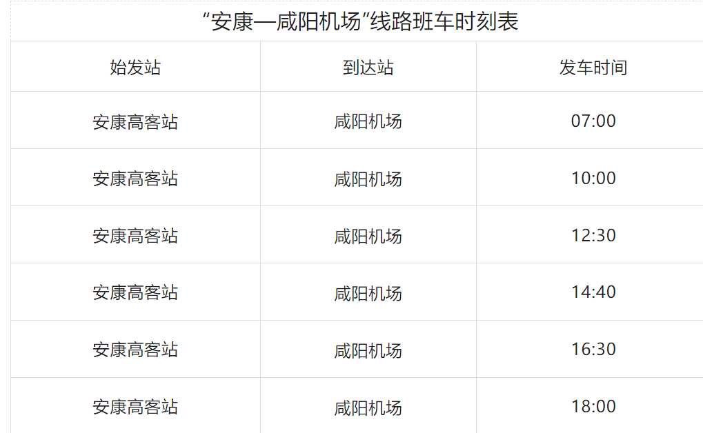明日起,“安康—咸陽(yáng)機(jī)場(chǎng)”客運(yùn)線路發(fā)車時(shí)間調(diào)整