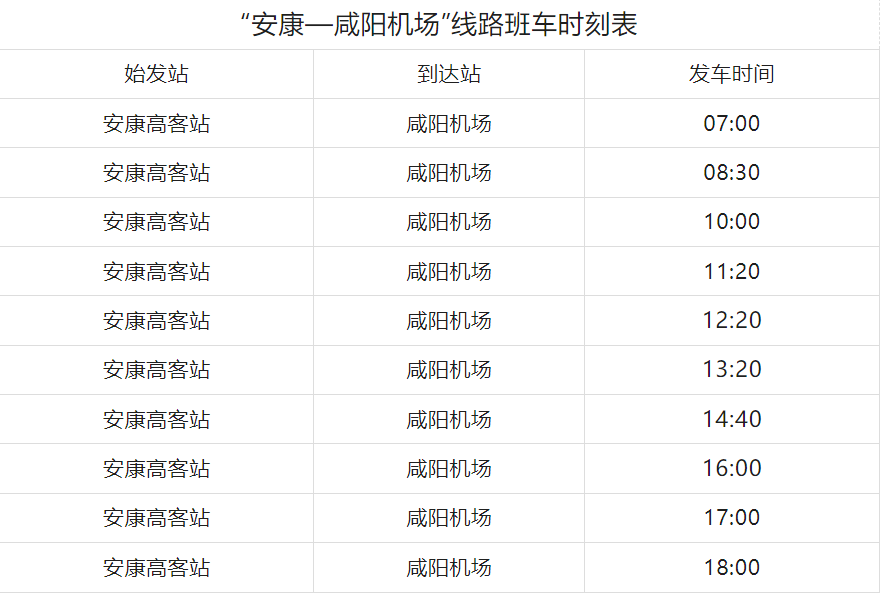 “安康—咸陽機場”客運線路發(fā)車時間調(diào)整