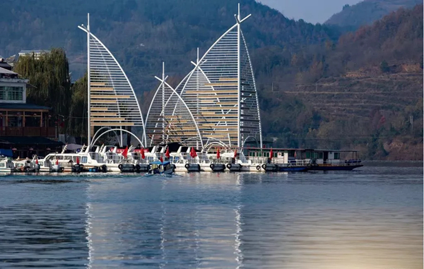 初到安康市漢濱區(qū)流水鎮(zhèn),放眼望去,青石鋪就的街道,頗具古風的酒肆店面,令人耳目一新。緩步前行,步行百余步,及至碼頭,豁然開朗,碧水蜿蜒于青山之間,輕舟搖曳,漸行漸遠,不禁想起唐代詩人李白的那句“孤帆遠影碧空盡,唯見長江天際流”,飽具詩情畫意。