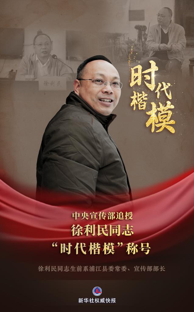 徐利民,男,漢族,中共黨員,1970年6月生,浙江浦江人,生前系浦江縣委常委、宣傳部部長。徐利民同志扎根基層工作30余年,始終堅(jiān)守共產(chǎn)黨人理想信念,胸懷“國之大者”,獻(xiàn)身黨的事業(yè),用一生奉獻(xiàn)踐行對黨忠誠的無悔誓言。他牢記總書記殷殷囑托,堅(jiān)定不移踐行“八八戰(zhàn)略”,用為民造福彰顯人民至上的價(jià)值追求。他堅(jiān)持守正創(chuàng)新,練就過硬本領(lǐng),全身心投入上山文化研究宣傳,用實(shí)干篤行擔(dān)當(dāng)宣傳干部新的文化使命。2022年9月,徐利民同志因積勞成疾,突發(fā)重病不幸去世,終年52歲。
