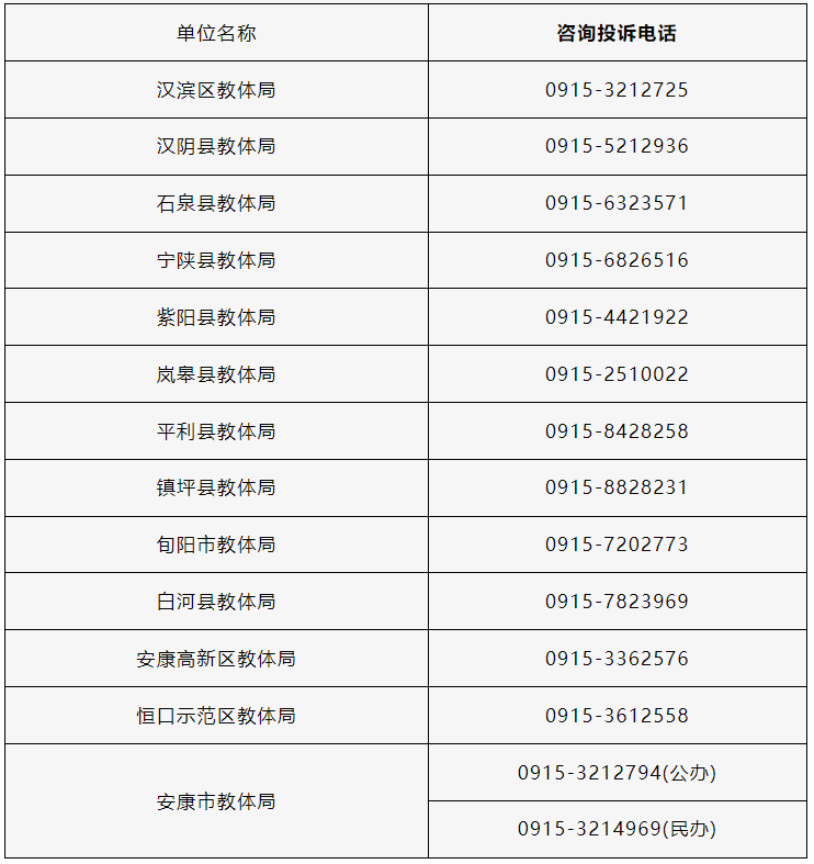 2.2024年安康市義務(wù)教育招生入學工作咨詢投訴電話