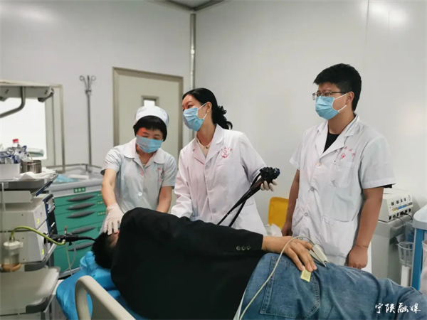 7月8日,走進(jìn)寧陜縣醫(yī)院內(nèi)鏡室,門外已有三、四名患者排隊(duì)。診室內(nèi),金壇區(qū)第一人民醫(yī)院消化內(nèi)科副主任醫(yī)師潘良正在為一名患者做胃鏡。檢查結(jié)束后,潘良詳細(xì)詢問了患者的其他癥狀并開出藥方,叮囑患者注意飲食,按時(shí)服藥。