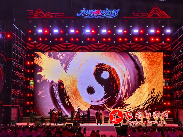 夜幕降臨,開幕式現(xiàn)場(chǎng)美輪美奐、氣勢(shì)恢宏。燈光秀、歌舞秀拉開活動(dòng)帷幕,博得雷鳴般的掌聲。21個(gè)鎮(zhèn)代表隊(duì)登臺(tái)亮相?!盁熁ㄐ恪辫矈Z目,化作多彩光芒,點(diǎn)亮太極城的夜空。伴隨著現(xiàn)場(chǎng)觀眾的激情吶喊,文藝節(jié)目相繼上演,歌伴舞《沖呀!去旬陽》、旬陽好物旬陽非遺推介、舞蹈《舞動(dòng)長(zhǎng)樂紅》、民歌聯(lián)唱《姐不約郎郎不來》、千人復(fù)誦《太極·旬陽賦》、太極秀《太極江湖》、千人齊跳《太極舞》等節(jié)目,充分展示了旬陽的文化底蘊(yùn)、旅游資源、人文風(fēng)情,掌聲如潮、歡聲如雷。中國(guó)內(nèi)地歌手屠洪剛演唱的歌曲《你》《江山無限》《精忠報(bào)國(guó)》瞬間將現(xiàn)場(chǎng)氣氛燃爆。