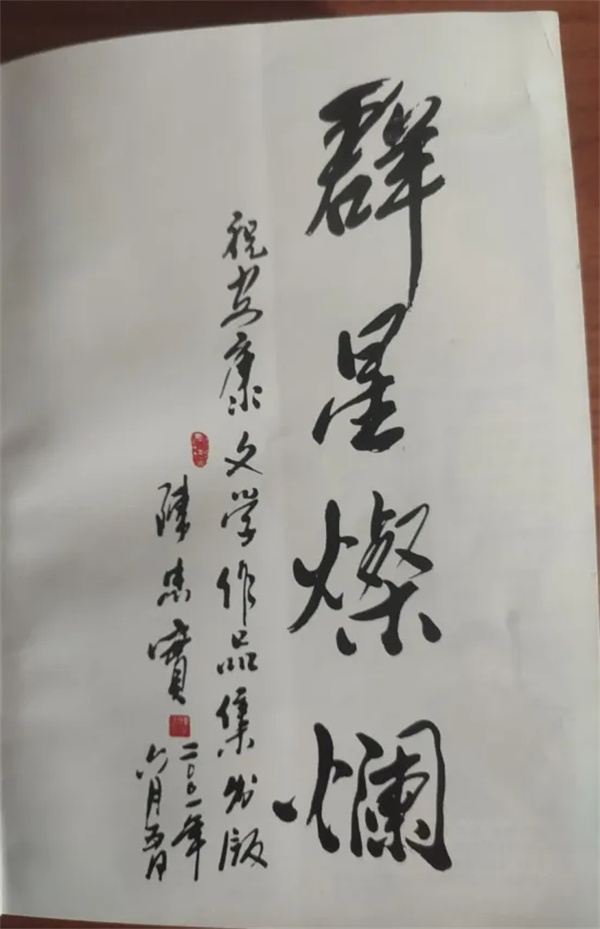 2001年5月下旬,我主編的《安康作家優(yōu)秀作品選》基本成型,編錄的有80多萬字,包括本市的中國作協(xié)、省作協(xié)、市作協(xié)會員180多人,原稿厚厚的一尺多高一墩了。出版前我想得有個壓軸的,便把一大包作品復印件不打招呼、就徑直寄給陳忠實,附信說請他寫個序。大約一個星期就收到陳忠實回信,說我做了件好事、有的地市還沒有這樣弄過;說他太忙,作品倒是大概看了、安康他知道的作家都在里面,還行。但是太忙、實在沒有時間再仔細看,也就不好寫序,務必諒解……末了,那寄給他的復印件都沒退,倒是給寄來了橫的、豎的,長短大小不一的、毛筆書寫在宣紙上的幾種形式的題詞“群星燦爛——祝安康文學作品集出版 陳忠實 二00一年六月五日”,每張題詞的宣紙還折疊得棱角分明、上下對稱。收到后,我的心里重騰騰的,想陳老漢下的功夫不小哩,只怕不比花費一兩個小時、走馬觀花地寫個洋洋灑灑的三兩千字的序省事!《安康作家優(yōu)秀作品選》當年出版后,有了反響、也有了結(jié)余。我專門委托在西安一雜志社打工的本土青年作者洪曉晴去西安找陳忠實,送上3本書、并送上500元潤筆費。不料、陳忠實見了書高興,但堅決不收這500元,并又給我來了一封信,解釋說文人都窮、出個書不容易哩!最后,信的結(jié)尾,陳忠實又幾乎是批評我,說我得有自己的創(chuàng)作哩!看來,陳忠實固然支持和欣賞編輯這種區(qū)域性系統(tǒng)性的作品集,但他更希望看到文學作者創(chuàng)作出具有個體生命體驗及其獨特感悟的作品,文學的靈魂和生命,畢竟是創(chuàng)造。