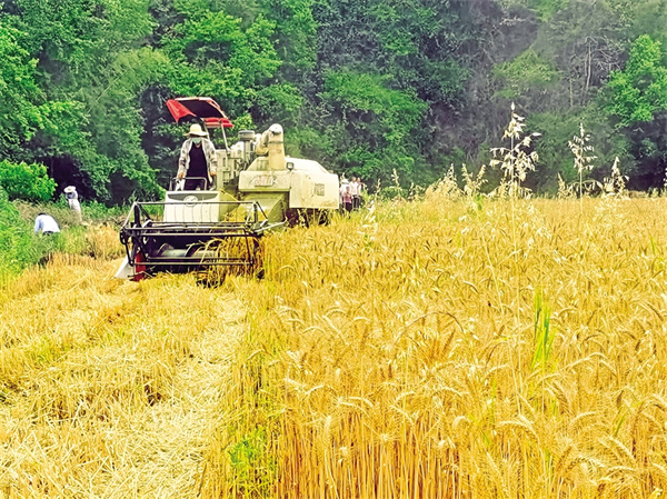 風(fēng)吹麥田千層浪,又到一年收獲時(shí)。在漢濱區(qū)晏壩鎮(zhèn)中心社區(qū)安康客意然農(nóng)業(yè)開發(fā)有限公司種植園區(qū)內(nèi),小麥在陽光的照耀下,閃著金燦燦的光芒,沉甸甸的麥穗隨風(fēng)搖曳,發(fā)出“沙沙”聲響。收割機(jī)正馬力全開,在金色麥浪中來回穿梭,伴隨著陣陣轟鳴聲,小麥從機(jī)艙中傾瀉而出,顆顆金黃、粒粒飽滿,裝滿車輛,整個(gè)過程一氣呵成,高效而精準(zhǔn)。