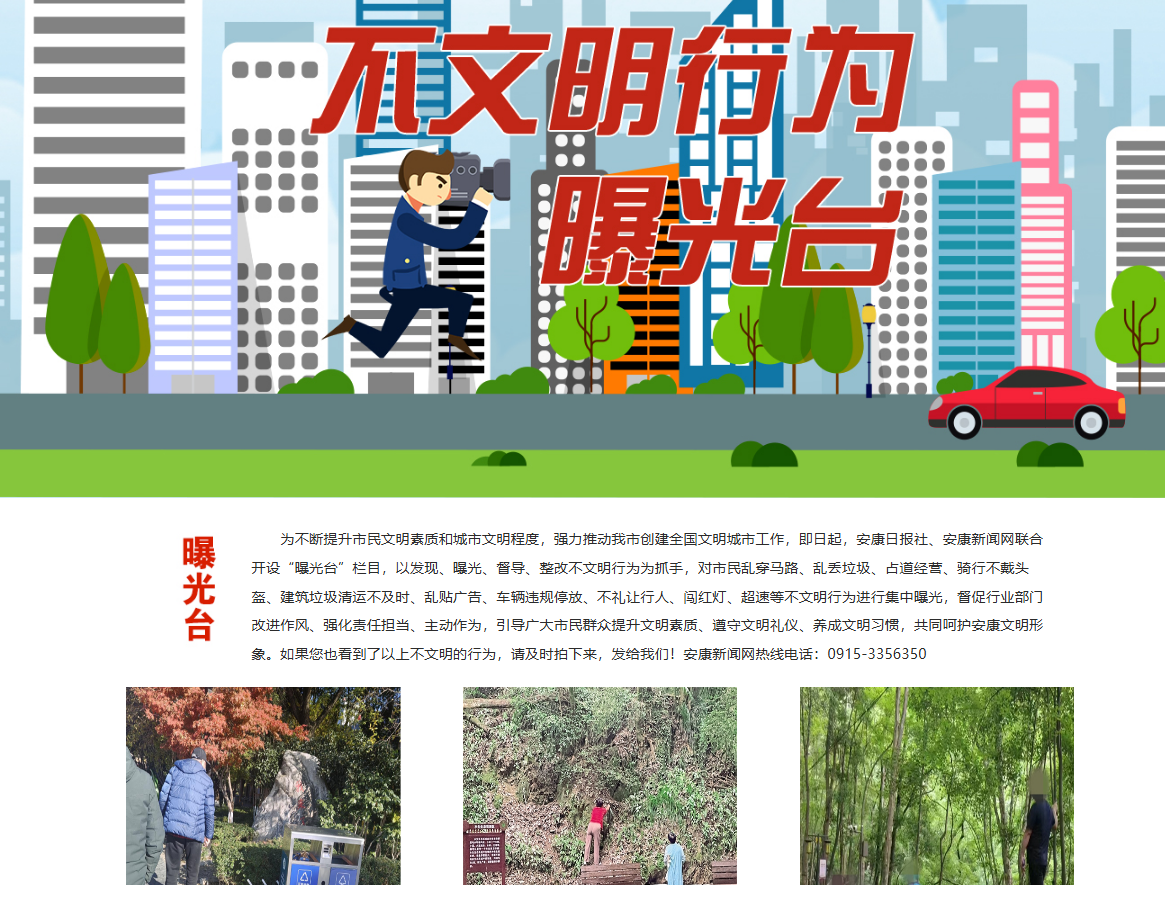 安康新聞網(wǎng)繼續(xù)充分發(fā)揮輿情監(jiān)測(cè)和輿論監(jiān)督作用,以高度負(fù)責(zé)的態(tài)度,及時(shí)監(jiān)測(cè)上報(bào)重大輿情信息。開(kāi)設(shè)《不文明行為曝光臺(tái)》輿論監(jiān)督專(zhuān)欄,集中曝光身邊的不文明現(xiàn)象、行為,發(fā)布消息報(bào)道19篇,引導(dǎo)市民群眾自覺(jué)規(guī)范文明行為,主動(dòng)融入城市文明創(chuàng)建熱潮,為提升市民文明素質(zhì)和城市文明程度貢獻(xiàn)媒體力量,體現(xiàn)地方黨媒的責(zé)任與擔(dān)當(dāng)。