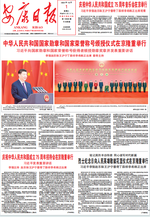 (2024年10月1日安康日報(bào)01版“中華人民共和國國家勛章和國家榮譽(yù)稱號(hào)頒授儀式在京隆重舉行”)