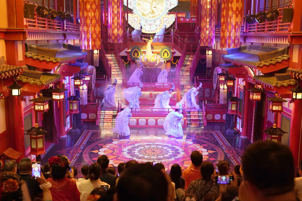 2024年5月19日,游客在西安長安十二時辰景區(qū)觀看表演《霓裳羽衣舞》。“長安十二時辰”主題街區(qū)將唐朝文化與現(xiàn)代旅游相結(jié)合,讓游客仿佛置身于千年前的長安城。近年來,西安積極推進產(chǎn)業(yè)升級和文旅融合,以中華優(yōu)秀傳統(tǒng)文化創(chuàng)新創(chuàng)造活力助推經(jīng)濟社會高質(zhì)量發(fā)展,如大唐不夜城一樣火爆“出圈”的文旅項目層出不窮。