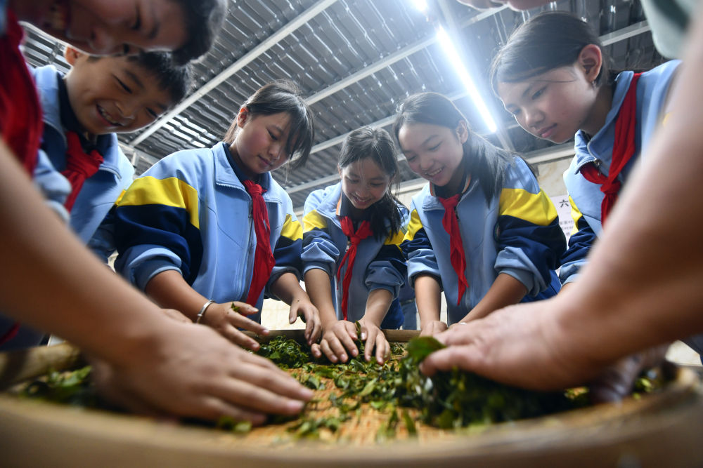 2024年12月3日,學(xué)生們在廣西梧州市蒼梧縣六堡鎮(zhèn)塘平小學(xué)學(xué)習(xí)制作六堡茶。廣西六堡茶已有1500多年的歷史,其制作工藝被列入第四批國家級非物質(zhì)文化遺產(chǎn)代表性項目名錄。近年來,廣西圍繞打造千億元茶產(chǎn)業(yè)發(fā)展目標(biāo),深入實施綠色高效茶園建設(shè)、品牌提升和營銷體系建設(shè)、產(chǎn)業(yè)融合和茶文化提升等多項工程,形成了以六堡茶為引擎,早春茶等特色優(yōu)勢茶協(xié)同發(fā)展的產(chǎn)業(yè)格局,茶產(chǎn)業(yè)煥發(fā)勃勃生機。六堡茶正沿21世紀(jì)海上絲綢之路運達八方,香飄海內(nèi)外。2024年,廣西六堡茶產(chǎn)量達到4.3萬噸,綜合產(chǎn)值超300億元。