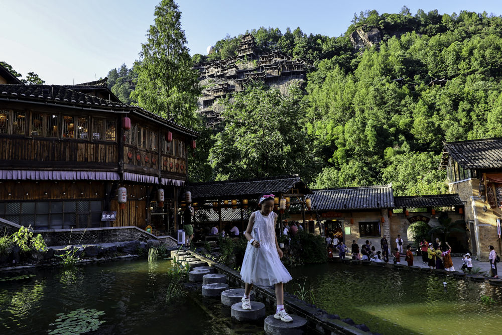2025年7月11日,游客在位于江西省上饒市望仙鄉(xiāng)的望仙谷景區(qū)游覽。近年來,望仙谷景區(qū)因其獨特的“仙俠世界”景觀火爆出圈,吸引大批游客來此觀光。景區(qū)2024年接待游客310萬人次,全年實現(xiàn)旅游收入5.28億元,同時顯著帶動周邊鄉(xiāng)鎮(zhèn)的食、住、行、娛等行業(yè)發(fā)展。望仙谷景區(qū)的建設(shè)運營促進了村民返鄉(xiāng)和能人進鄉(xiāng),提供直接就業(yè)崗位超過2000個,帶動周邊就業(yè)3萬余人。