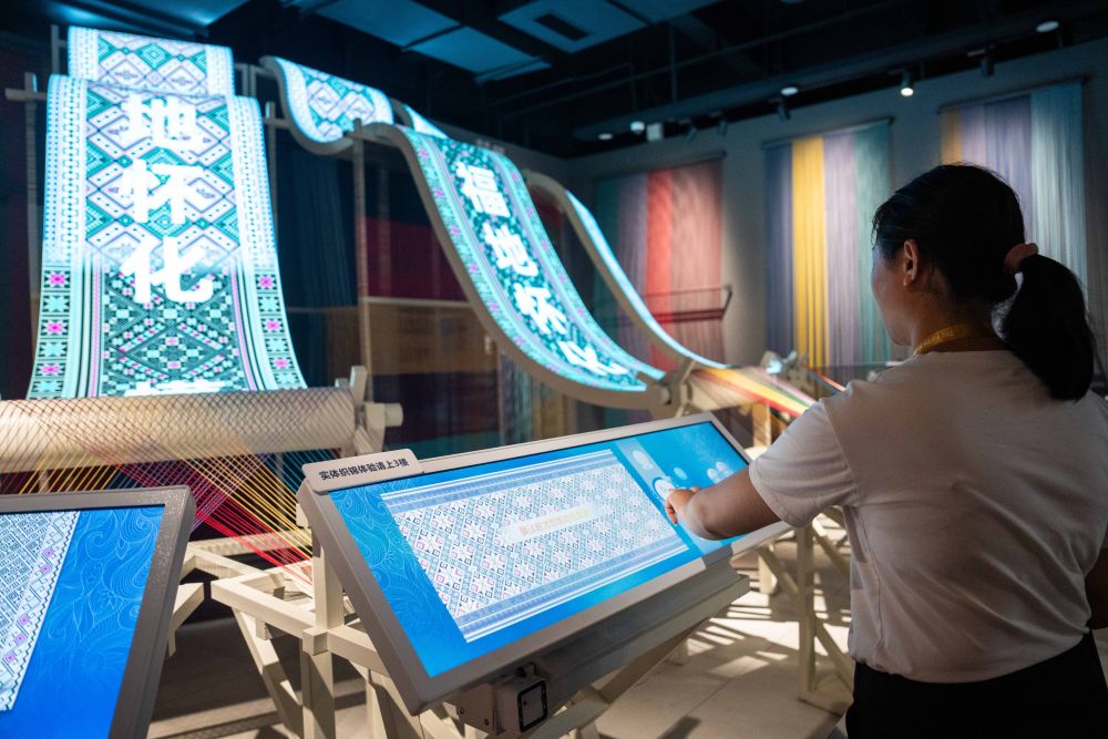 2025年9月16日,游客在湖南省懷化市五溪非遺園體驗數(shù)字化織錦。五溪非遺園于2025年5月正式開園,包含非遺廣場、數(shù)字體驗空間和研學(xué)工坊三大板塊,運用VR、AR、全息投影等技術(shù)打造42個沉浸式非遺體驗項目。目前,懷化以五溪非遺園為抓手,推出非遺主題研學(xué)項目、開發(fā)深度互動項目,構(gòu)筑特色文化產(chǎn)業(yè)體系,吸引更多人了解、學(xué)習(xí)非遺,讓傳統(tǒng)技藝成為城市發(fā)展的文化動力。