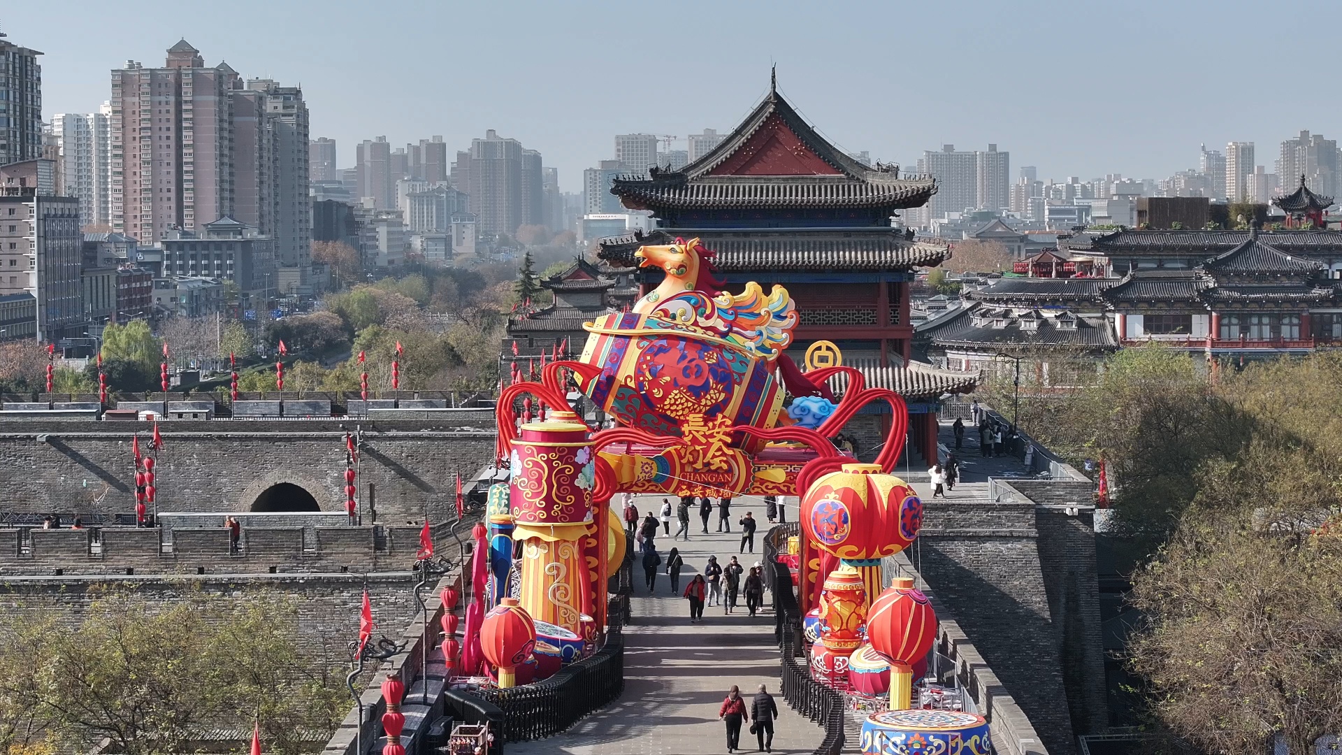 2026“長安燈會·西安城墻”花燈已初步搭建(央廣網(wǎng)記者 侯凱奇 攝)