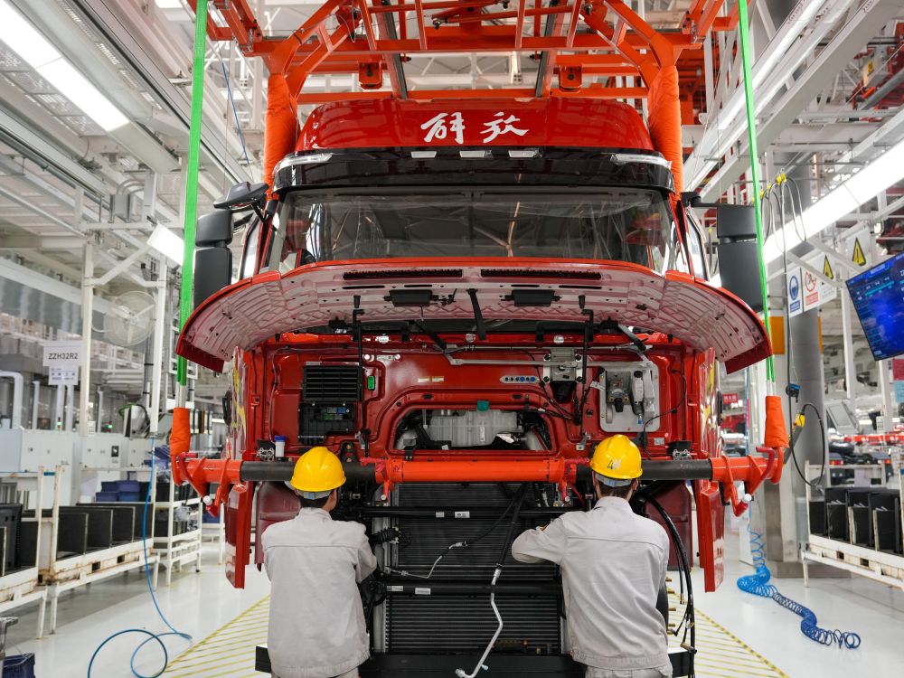 ??2026年1月4日,工人在位于吉林省長(zhǎng)春市的一汽解放J7整車(chē)智能工廠裝配車(chē)輛。新華社記者 張楠 攝