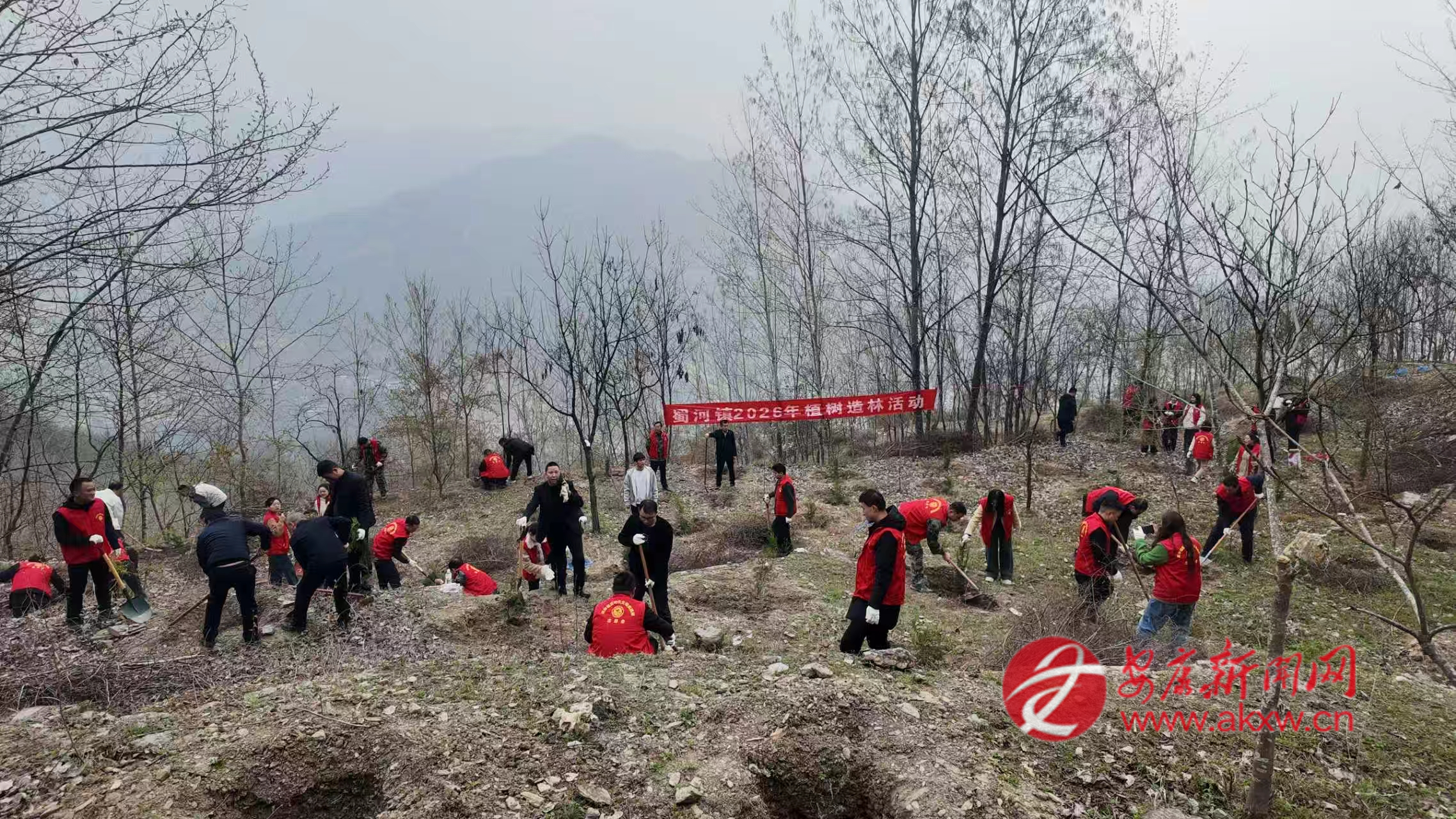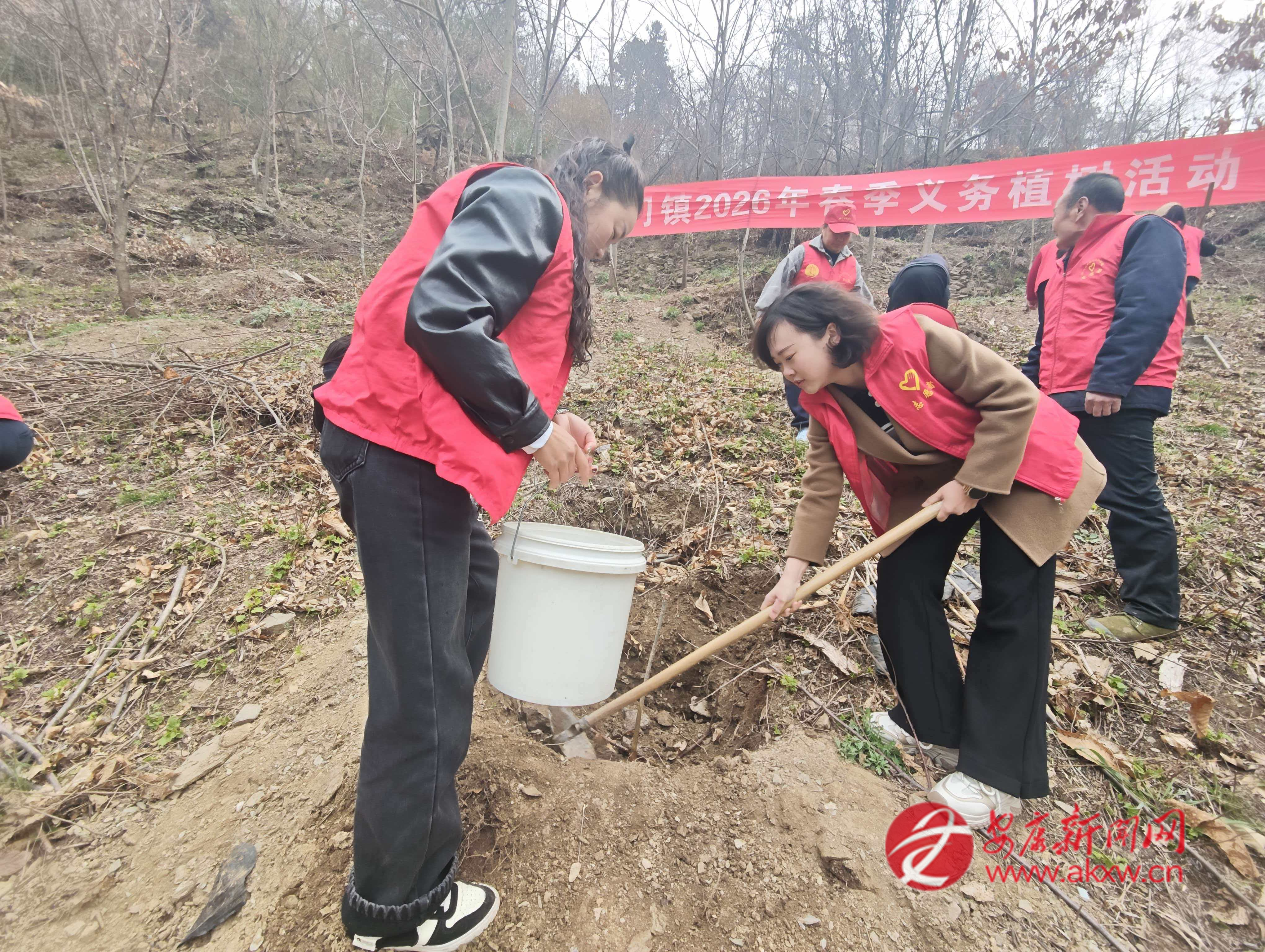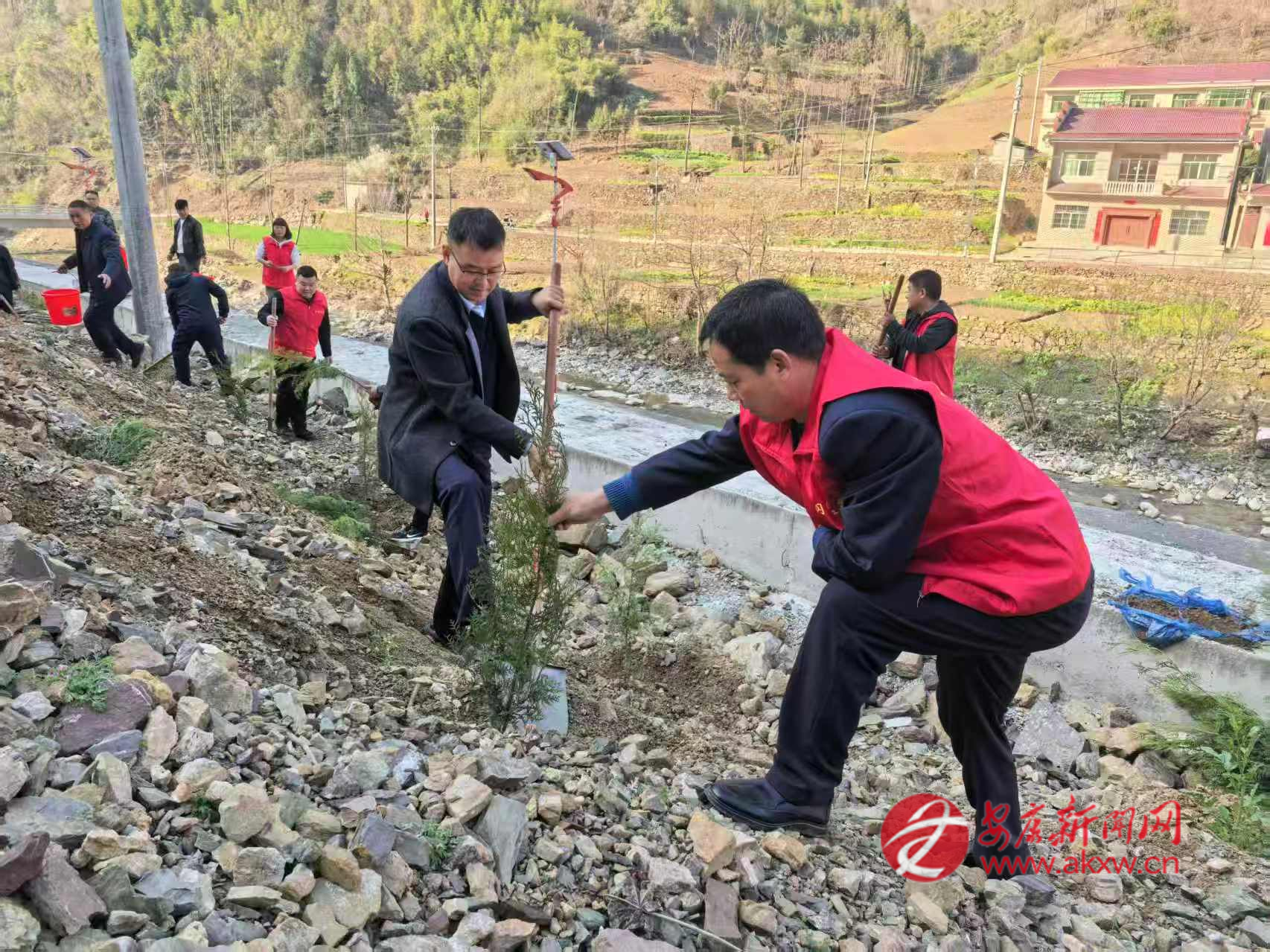 石門(mén)鎮(zhèn)組織鎮(zhèn)村干部、志愿者在樓房河村開(kāi)展春季義務(wù)植樹(shù)活動(dòng)