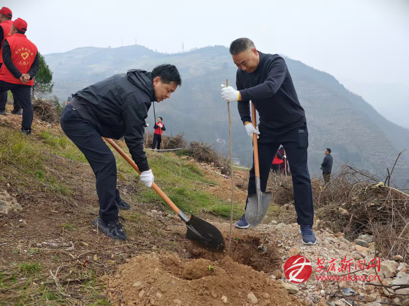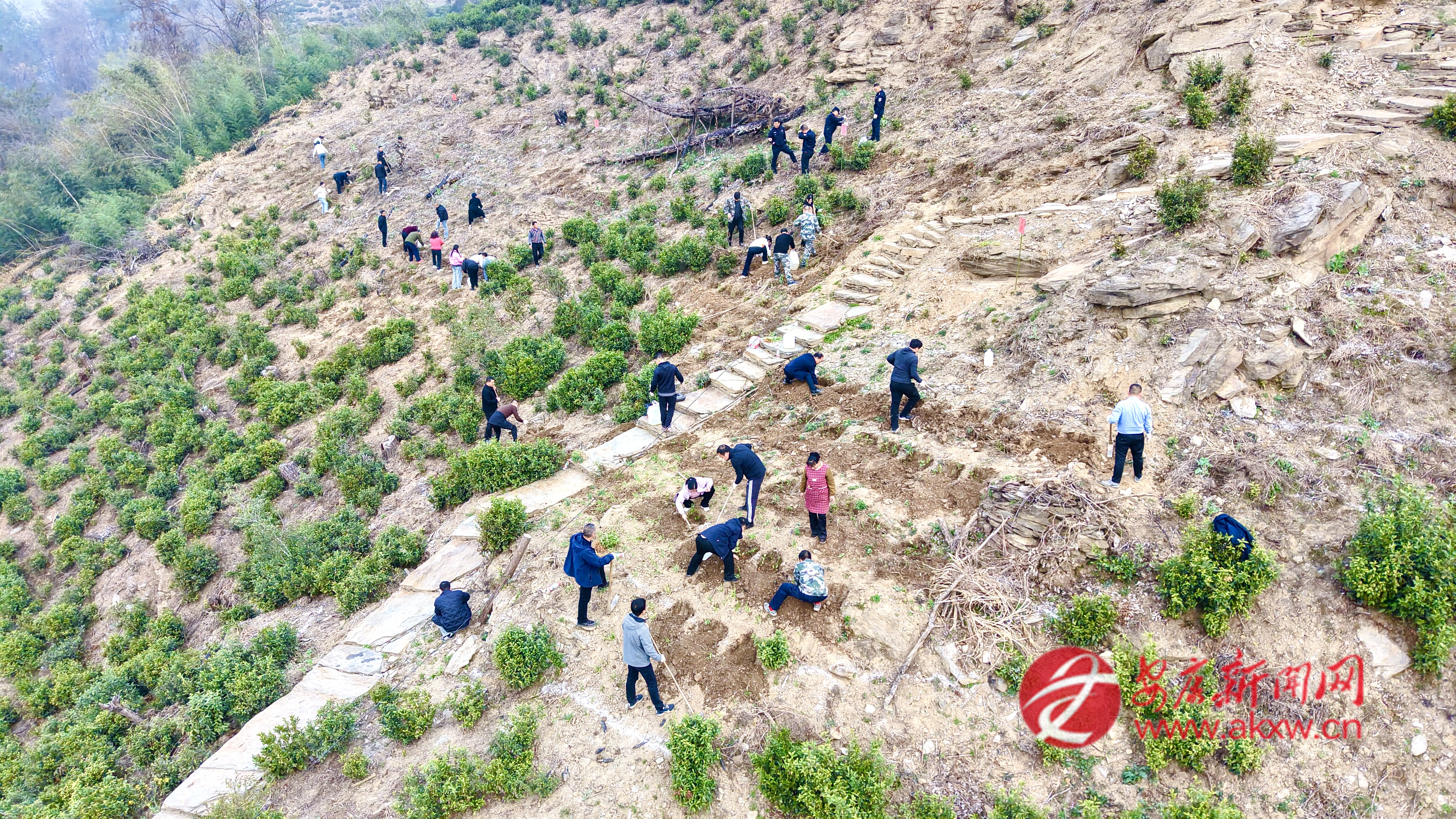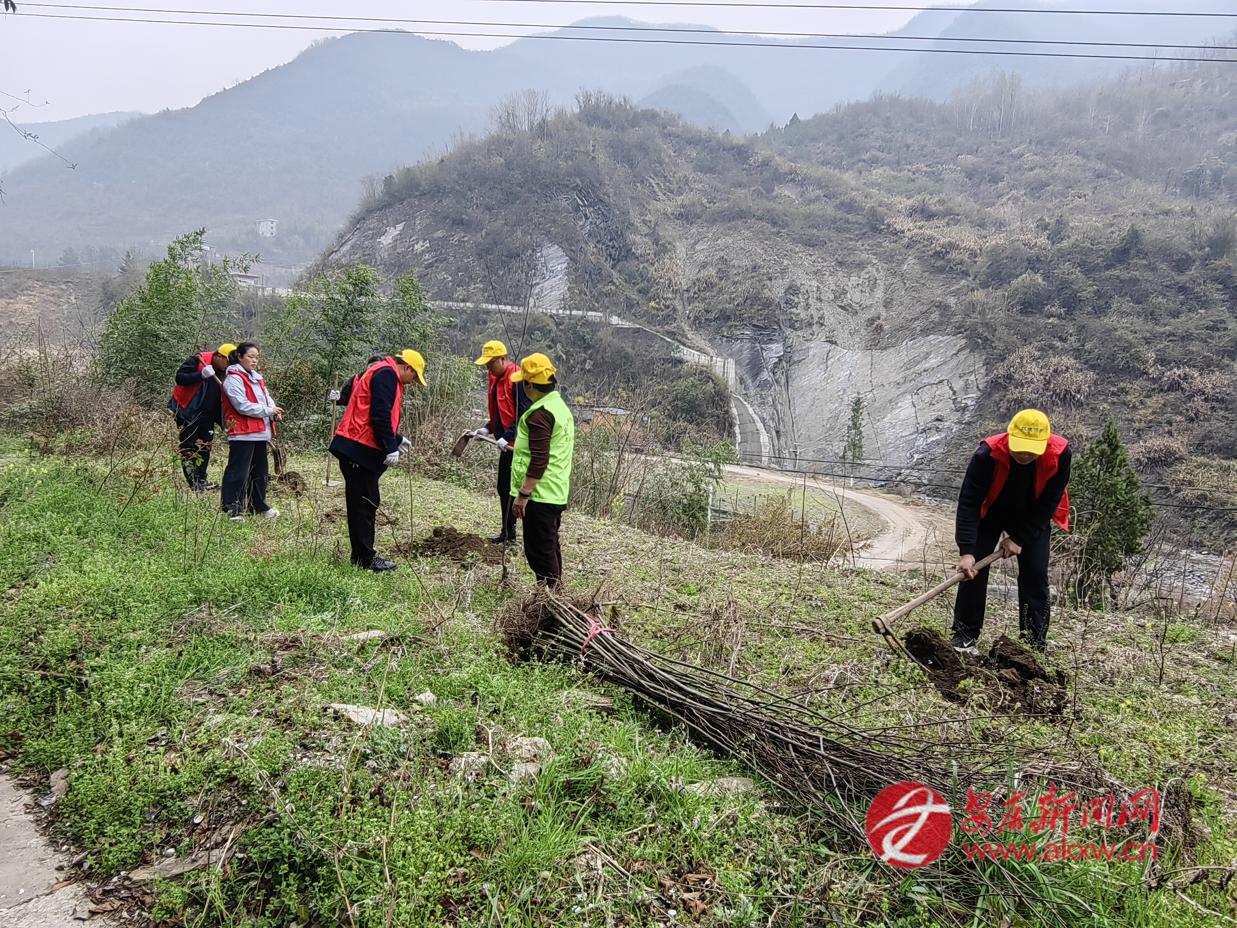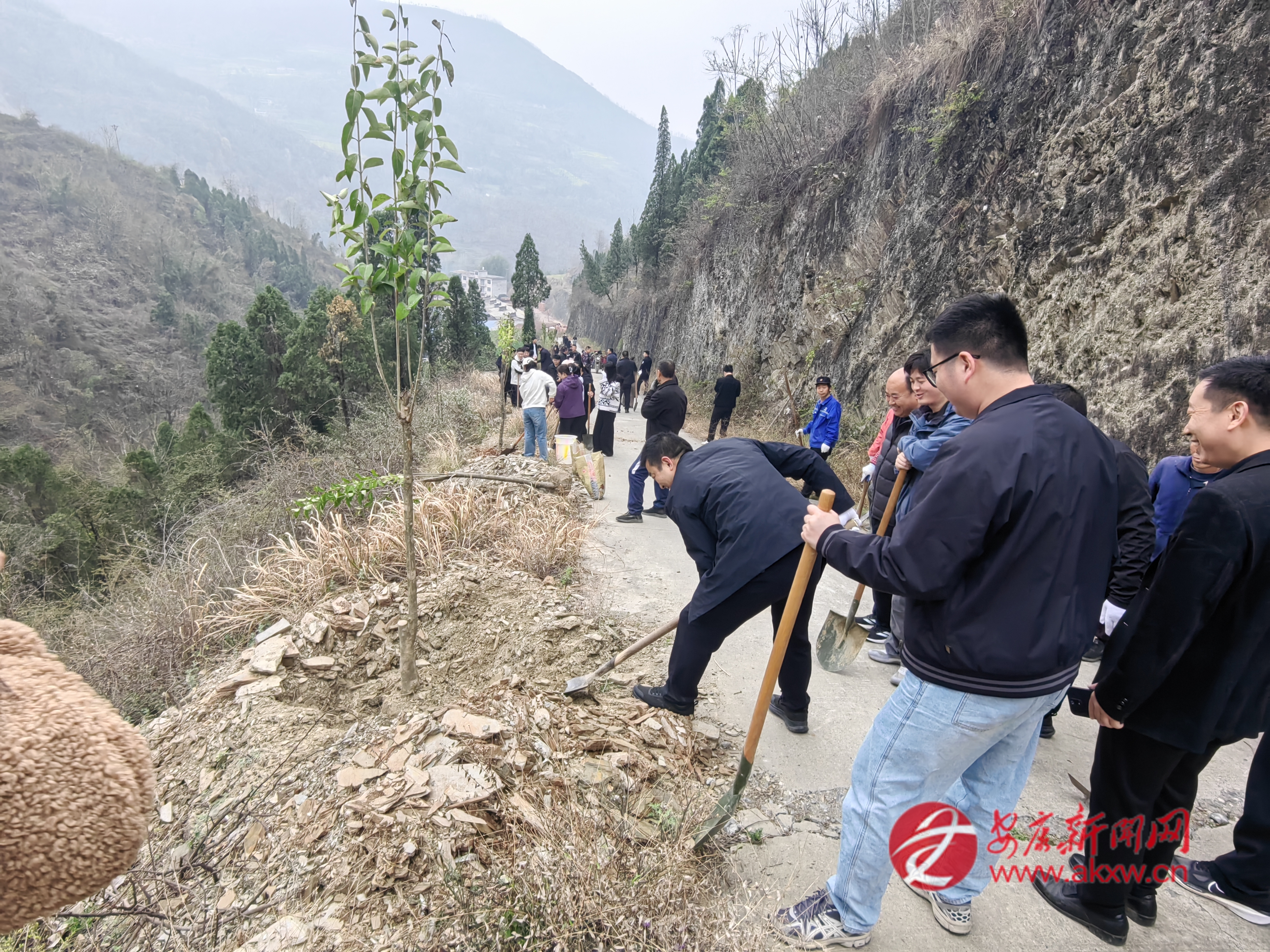 石門(mén)鎮(zhèn)組織鎮(zhèn)村干部、志愿者在樓房河村開(kāi)展春季義務(wù)植樹(shù)活動(dòng)