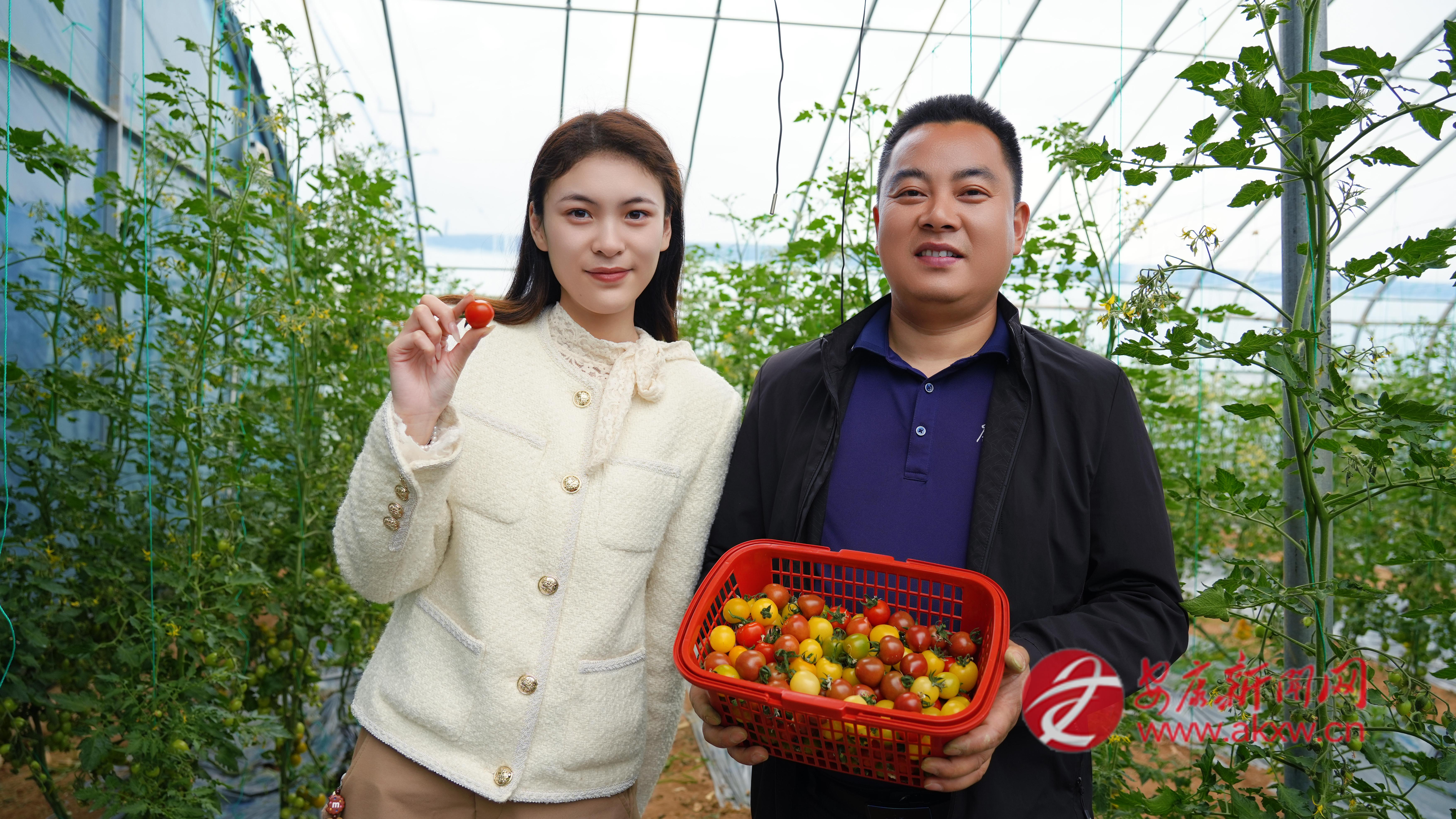 春日暖陽普照田園,產業(yè)園標準化種植大棚里綠意蔥蘢,清新果香彌漫其間。一排排番茄藤蔓長勢繁茂,紅、黃、綠、紫、白、焦糖等六色果實綴滿枝頭,圓潤飽滿、色澤鮮亮,宛如一顆顆彩色珍珠鑲嵌在綠葉間,格外惹人喜愛。