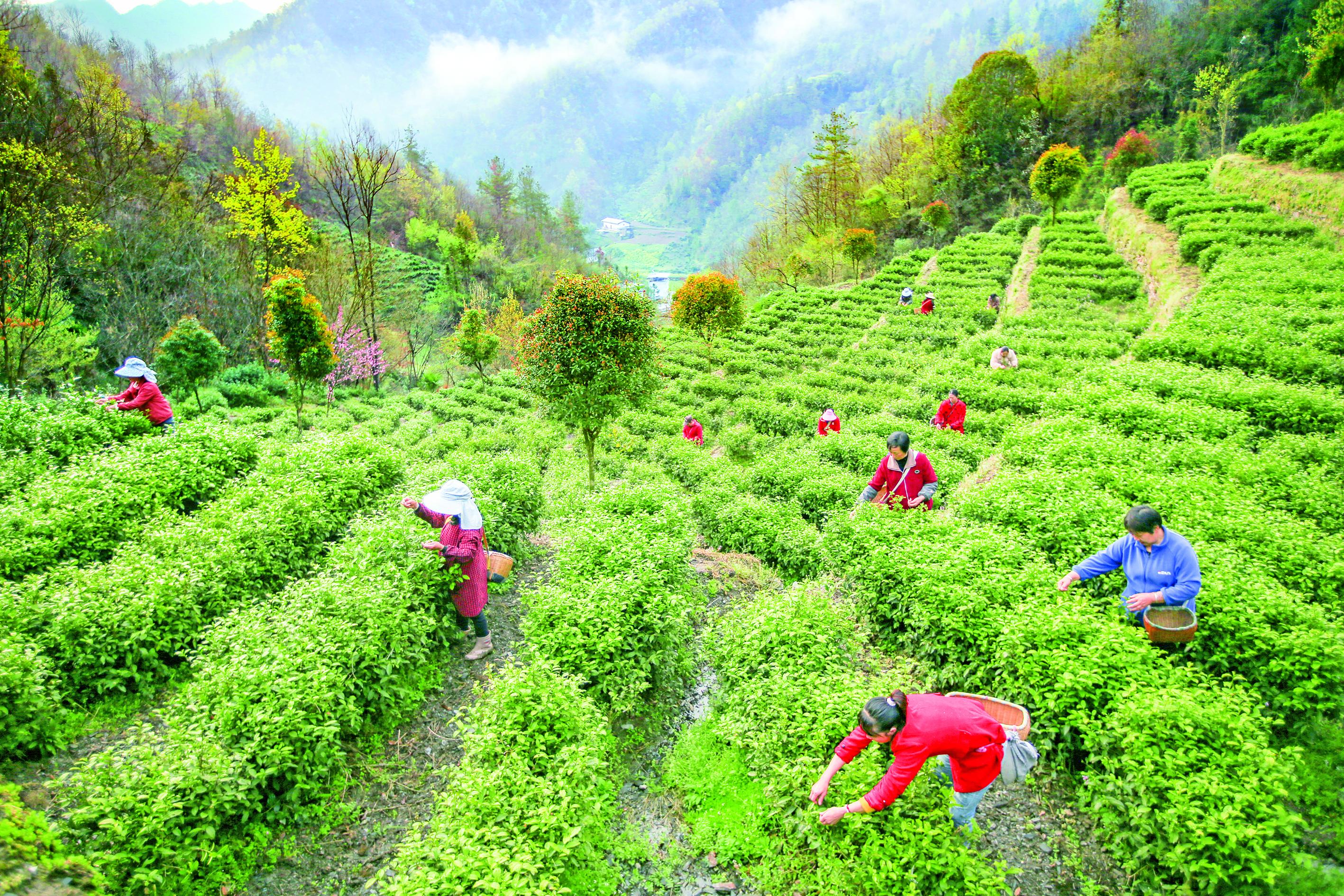 時下正值采茶高峰期,在白河縣宋家鎮(zhèn)雙喜村茶園內(nèi),茶農(nóng)們正搶抓農(nóng)時采摘春茶。據(jù)了解,今年該村春茶產(chǎn)量有所提高、質(zhì)量也更優(yōu)良,預(yù)計整個春茶采摘期持續(xù)1個月,全村今年春茶預(yù)計產(chǎn)量為20余萬斤,產(chǎn)值約6000萬元。 趙久剛 攝