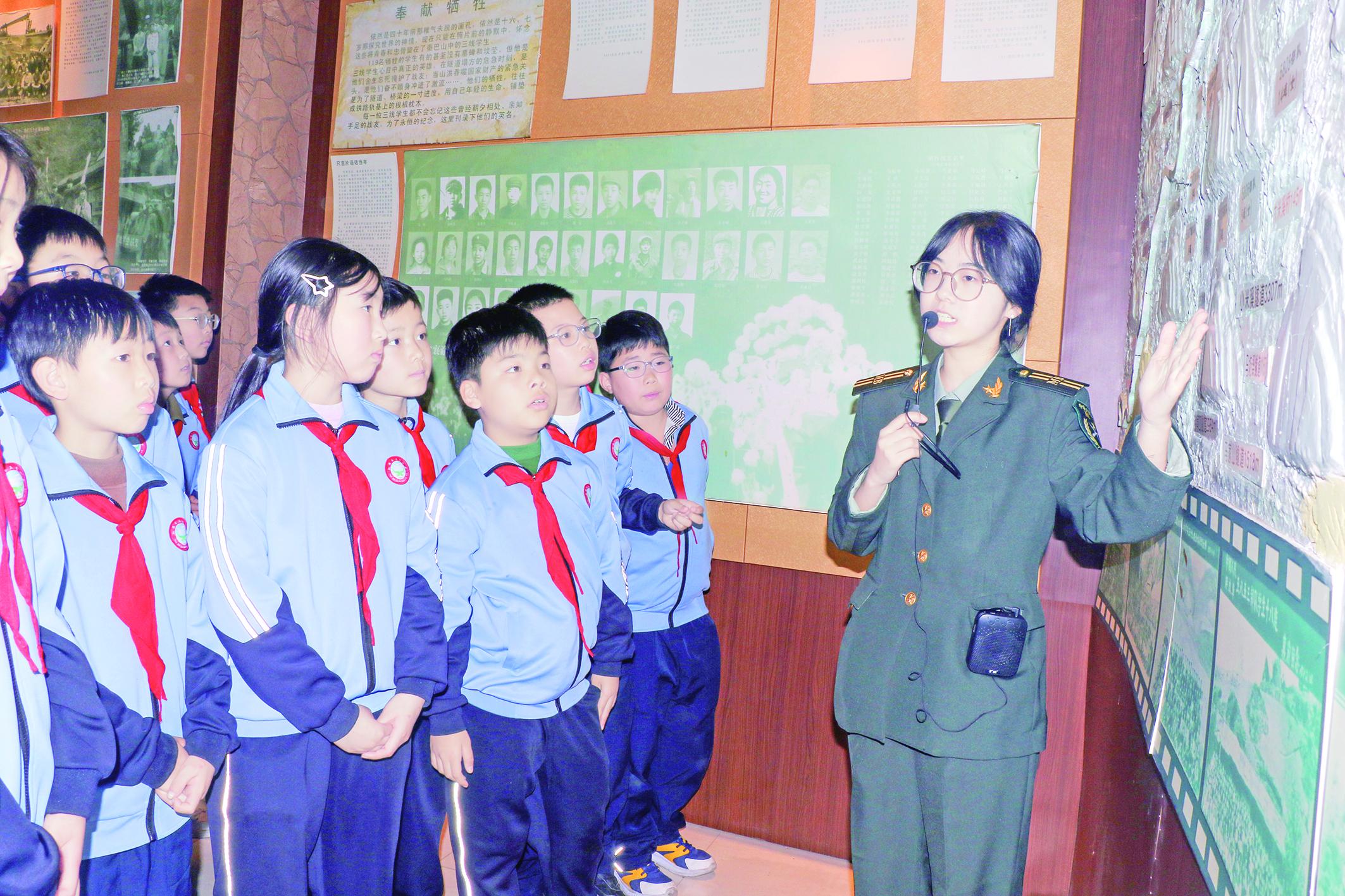 正在三線建設(shè)展覽館接受紅色教育的安康市第二小學(xué)四年級(jí)學(xué)生童顥森,聽完安康學(xué)院大一學(xué)生曹子然的講述后眼眶有些發(fā)紅地說:“以前只在課本里學(xué)過革命故事,今天聽姐姐講我們安康本地的英雄,真的很敬佩他們,我長大后也要像他們一樣,為國家多做貢獻(xiàn)?!睅ш?duì)的學(xué)校少先隊(duì)輔導(dǎo)員陳婷婷在一旁感慨:“大學(xué)生講給小學(xué)生聽,年齡相差不大,孩子們更容易聽進(jìn)去。這樣的現(xiàn)場紅色教育確實(shí)很好?!?/p>