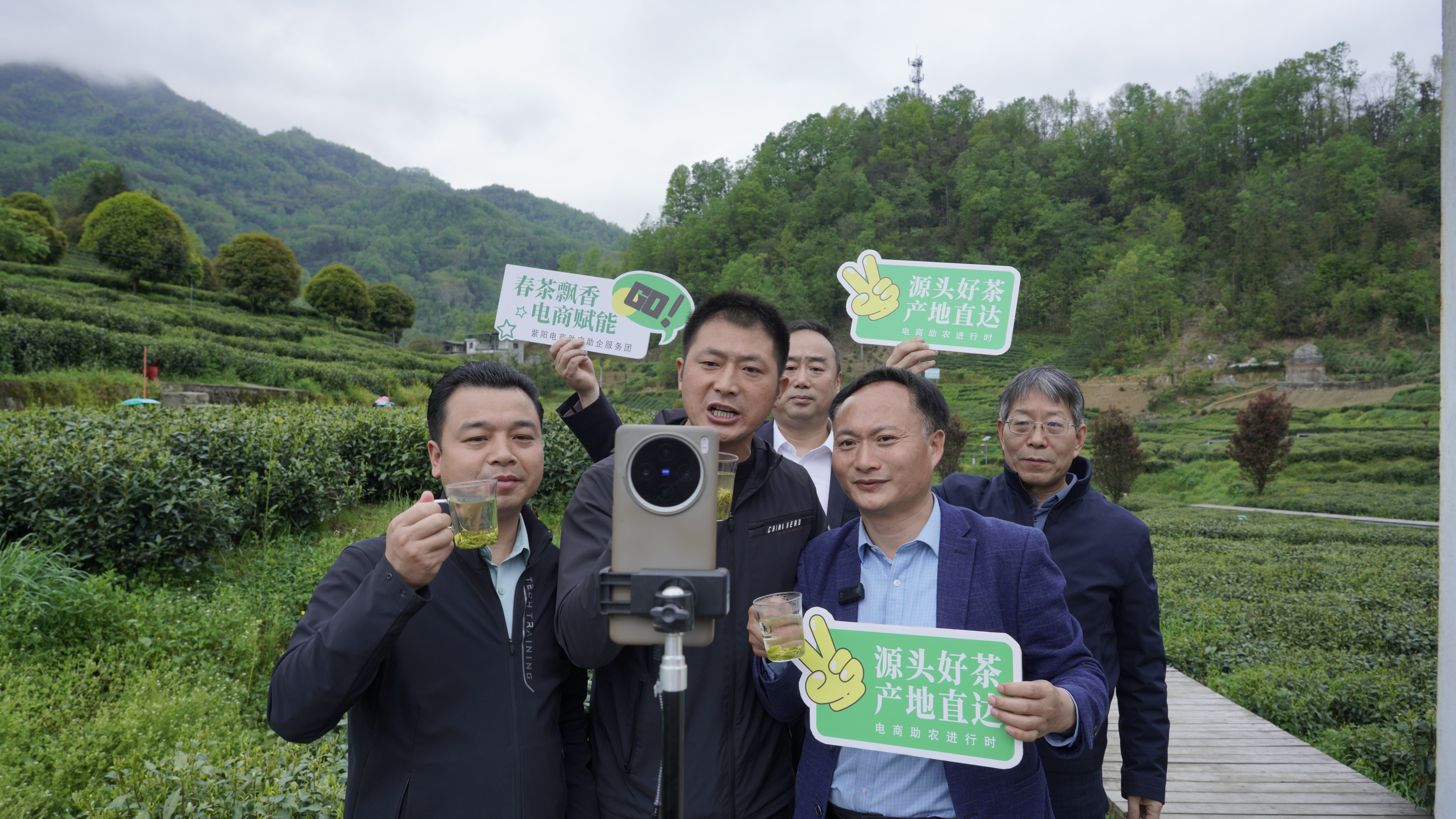 當(dāng)前正值紫陽縣口糧茶集中上市時(shí)節(jié),4月10日,該縣十余名駐村第一書記組團(tuán)走進(jìn)雙橋鎮(zhèn)茶葉園區(qū),開展“組團(tuán)服務(wù)·云端助農(nóng)”直播帶貨活動(dòng),以云端直播拓寬線上銷路,助力茶農(nóng)茶企增收增效。
