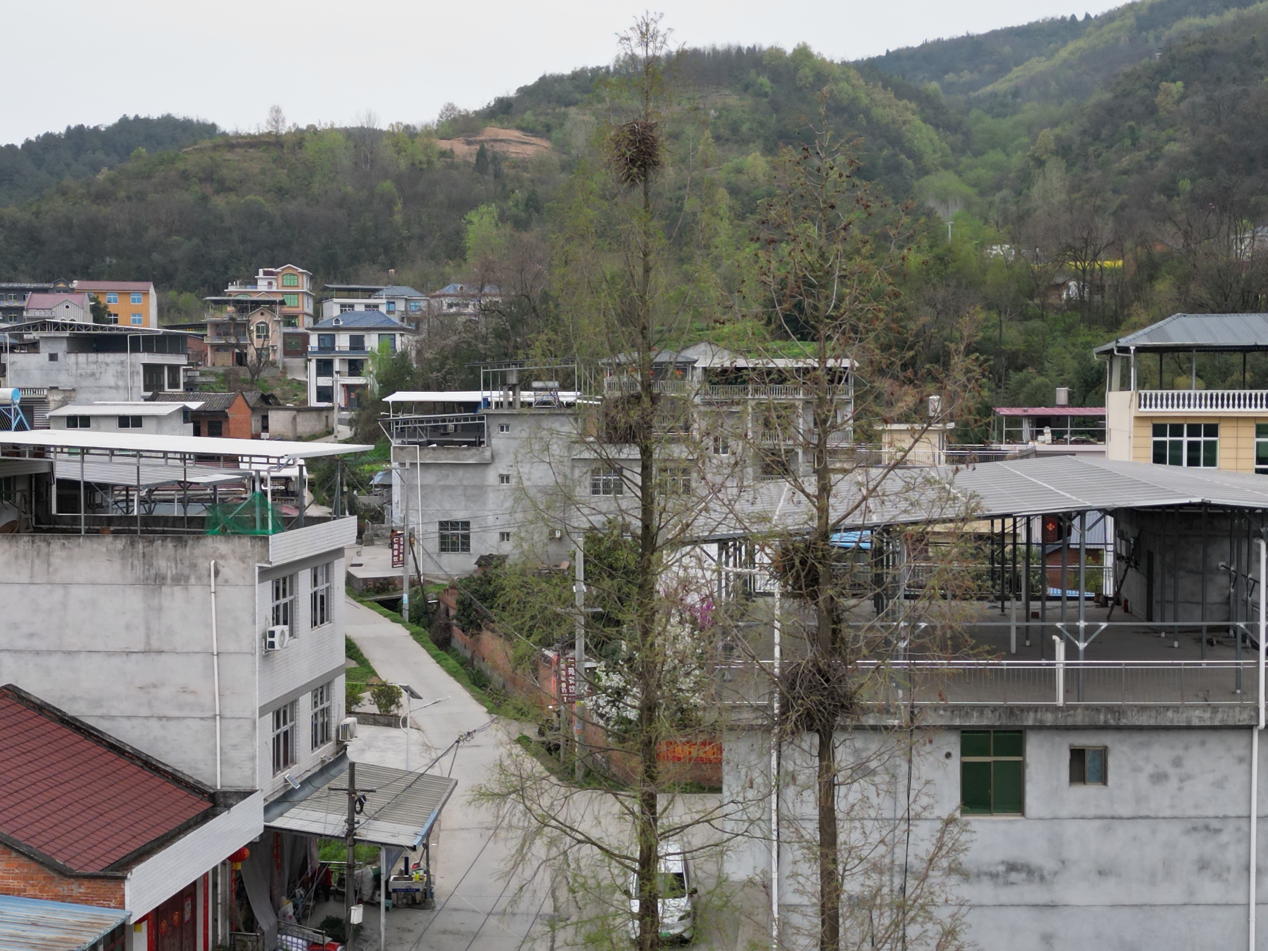 盡管沒有看到群鳥齊飛的壯觀場面,但偶爾有一兩對喜鵲或白鷺銜枝而歸,或立于巢邊清脆鳴叫。