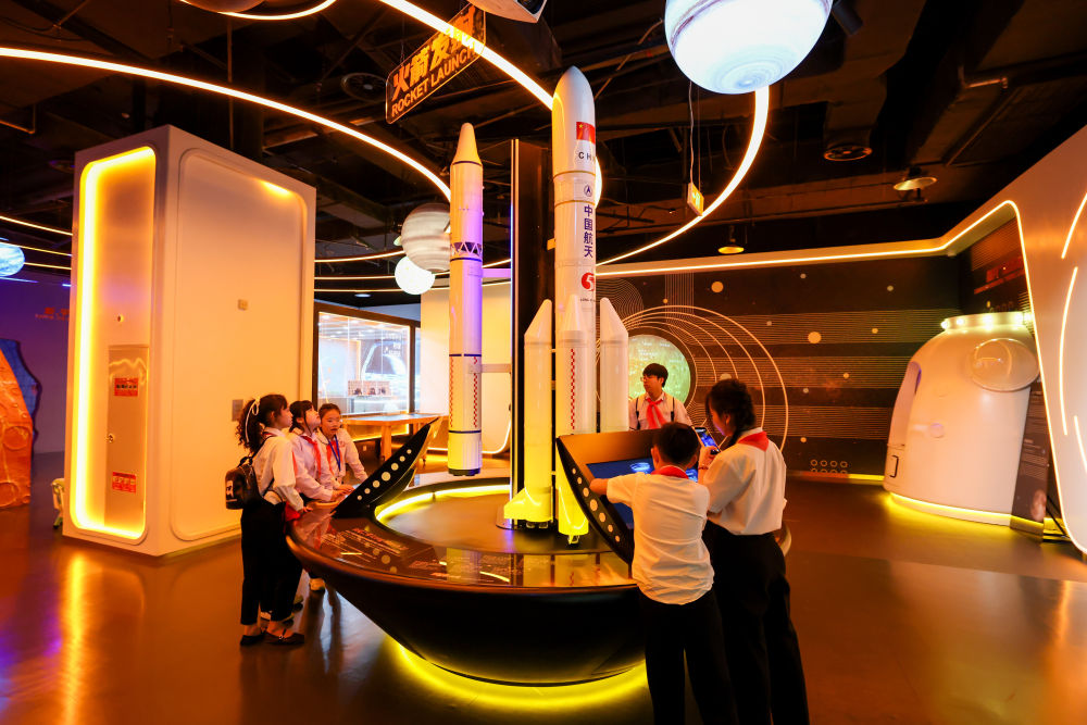 4月14日,越南青少年在位于北京的中國宋慶齡青少年科技文化交流中心了解航天知識(shí)。