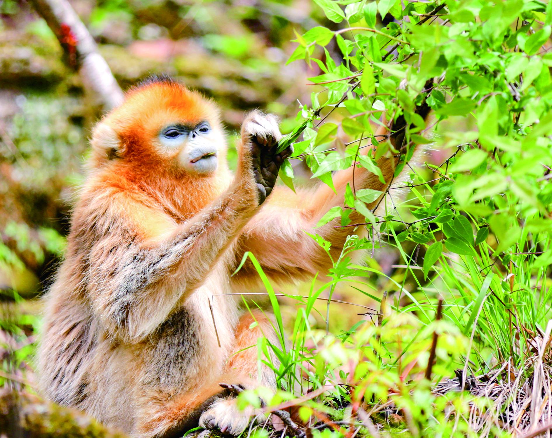 作為典型林間素食動(dòng)物,金絲猴飲食結(jié)構(gòu)天然健康。日常主要取食樹葉、嫩枝嫩芽、山野花卉、野生果實(shí)、鮮嫩竹筍,冬季食物匱乏時(shí),也會(huì)啃食樹皮、樹根、堅(jiān)果充饑,極少捕食昆蟲、鳥蛋補(bǔ)充少量蛋白質(zhì)。其胃部特殊分區(qū)結(jié)構(gòu),可高效消化植物粗纖維,適配山林天然食源。