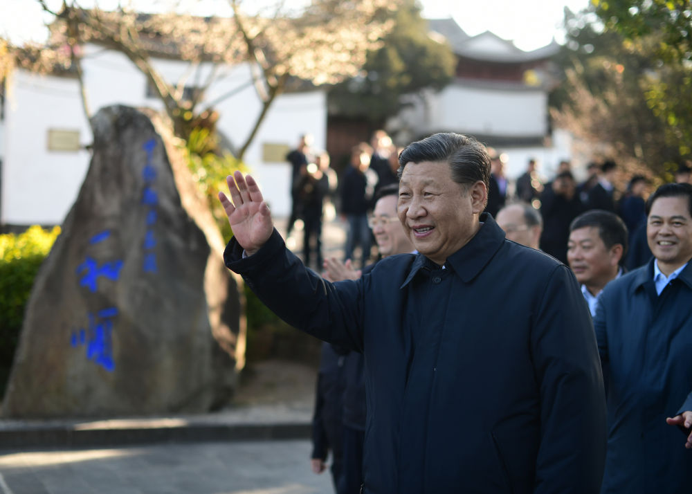 2020年1月19日下午,習近平在云南騰沖市和順古鎮(zhèn)考察調研時,向游客和村民揮手致意。