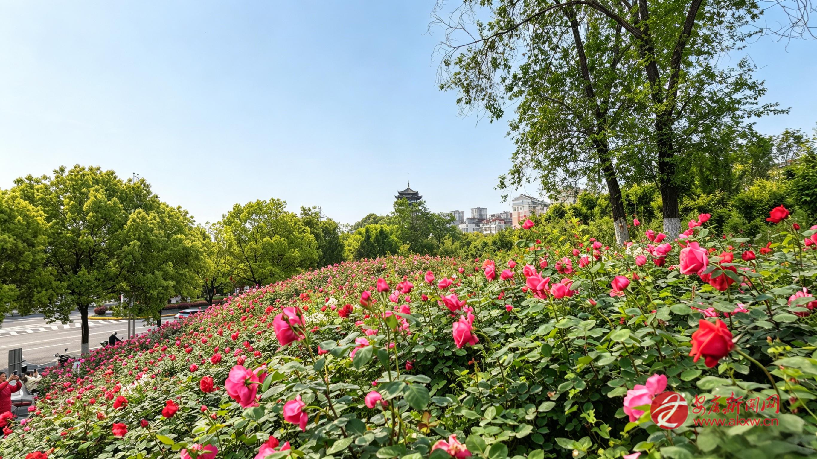 從金川門(mén)到西津漢江大橋的漢江堤岸上,月季長(zhǎng)廊如約綻放,紅似火、粉如霞,將濱江步道裝點(diǎn)得如詩(shī)如畫(huà)。市民和游客徜徉其間,與繁花合影,與江風(fēng)相擁,盡情享受春日的愜意時(shí)光。
