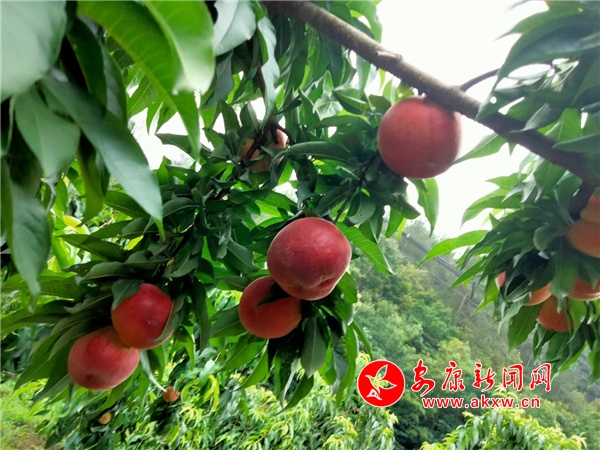 夏日清晨,在盤龍村集體經(jīng)濟(jì)合作社1000畝桃園里,掛滿枝頭色澤鮮艷的桃子,是全村人眼中的“寶”,走過桃園的人,總?cè)滩蛔《嗫磶籽邸?span style="display:none">3vJ安康新聞網(wǎng)