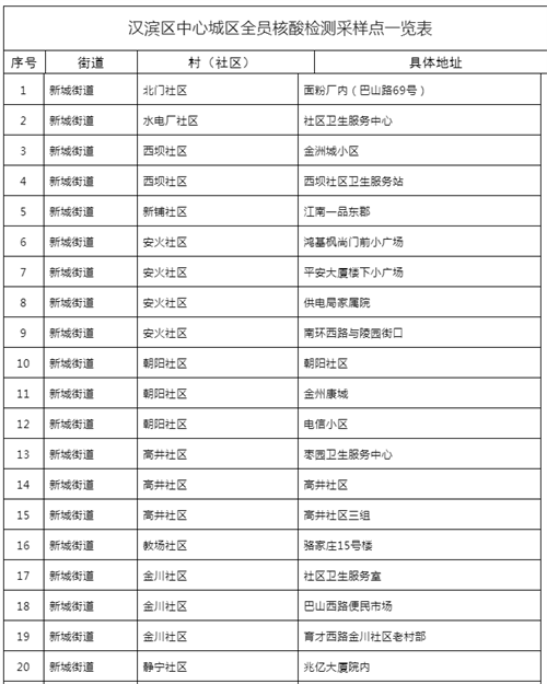 附件:漢濱區(qū)中心城區(qū)全員核酸檢測(cè)采樣點(diǎn)一覽表