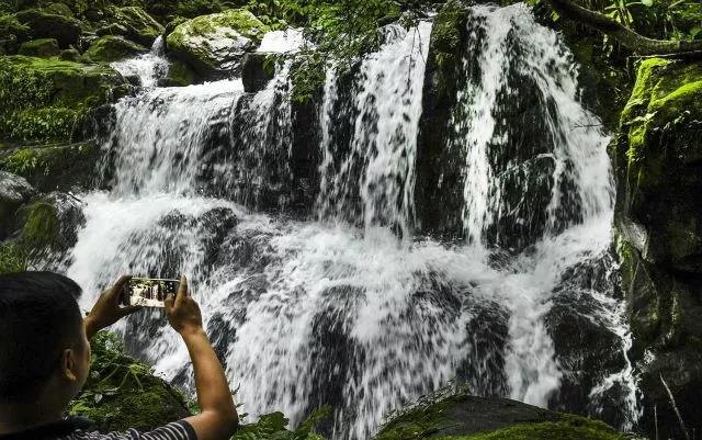 7月7日,游人在瀑布前拍攝。新華社記者陶明 攝6b6安康新聞網(wǎng)