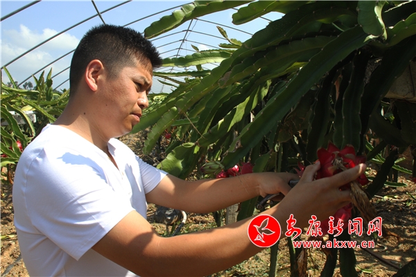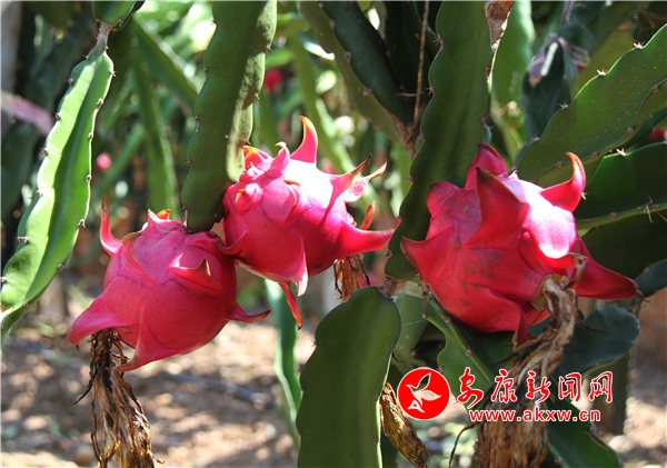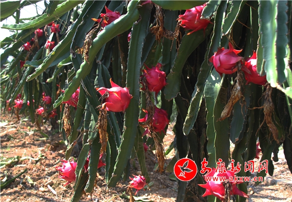 王浩家有二十多畝地用來種植紅心火龍果,坡上一個大棚,坡下三個,優(yōu)良的光照條件讓這里成熟的火龍果皮薄、肉厚、果汁充盈。據了解,火龍果的生長周期為當年7月到次年2月,只要悉心種植,可20年不換種苗連續(xù)掛果。“今年雨水充沛,氣溫也正合適,預計可產2萬斤,喜歡的朋友可以過來采摘“,王浩站在被紅艷艷的火龍果塞得滿滿當當的大棚里,喜滋滋地說到。