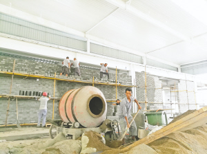 “現在你們看到的這兩個車間,地面已水泥硬化的車間是利用秸稈生產琉璃瓦的,對地基沒有太多要求;另外一個車間是生產輕質隔墻板的,我們要做基礎,對地基有要求,因為有重型設備,長、寬和高度都有要求。”苗小軍告訴記者。