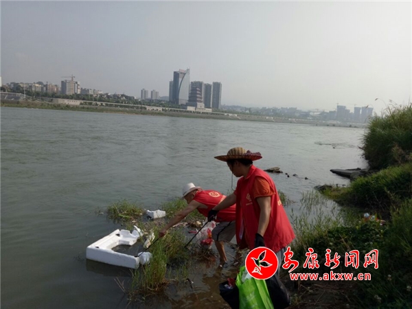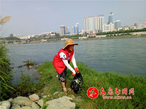 安康新聞網(wǎng)訊(實習記者 唐正飛 通訊員 王宗梅 林超 )8月17日天蒙蒙亮,漢江河岸旁除了零零星星的一些晨練市民,在水岸草叢處,身著紅色志愿服裝的海燕和她的隊友們在清澈的河水映襯下,格外顯眼。每天從早上6點起,大北社區(qū)居民海燕和她的隊員們就開始了一天的河岸垃圾打撈護河工作,從水西門到暴家巷河段,海燕和她的隊友們一趟走下來要花近1個小時,盡管是“三伏”天,海燕和她的隊員每天都要走一趟。