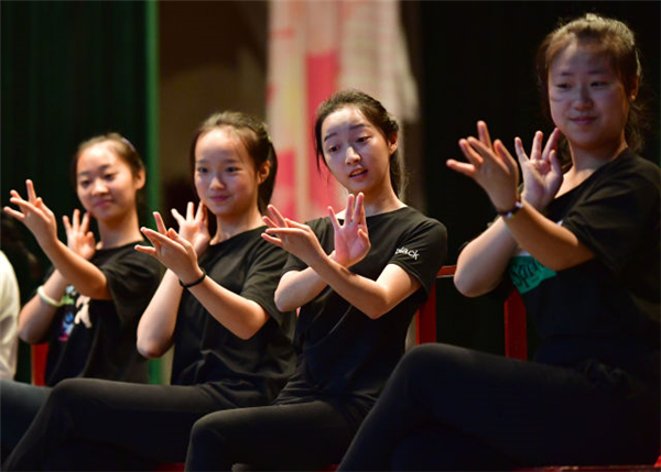 9月12日,“童子班”學員在練功房內觀摩同學排練。