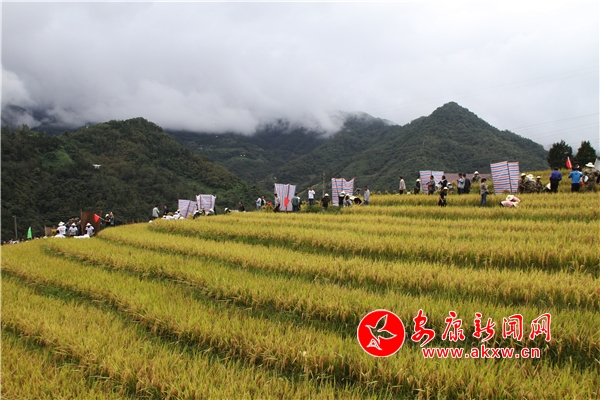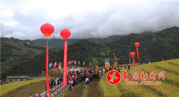 安康新聞網(wǎng)訊(記者 張喬 通訊員 張昊 曹婷婷)稻香秫熟暮秋天,阡陌縱橫萬畝連。金秋九月,又是一年豐收季。9月17日,嵐皋縣在南宮山鎮(zhèn)桂花村舉辦慶中國農(nóng)民豐收暨南宮稻作文化節(jié)。全縣12個鎮(zhèn)及縣內(nèi)外游客1000余人參加活動。新華社、陜西日報、安康日報、安康新聞網(wǎng)、安康電視臺、嵐皋廣播電視臺等媒體應(yīng)邀報道活動。