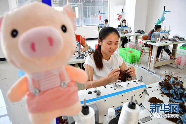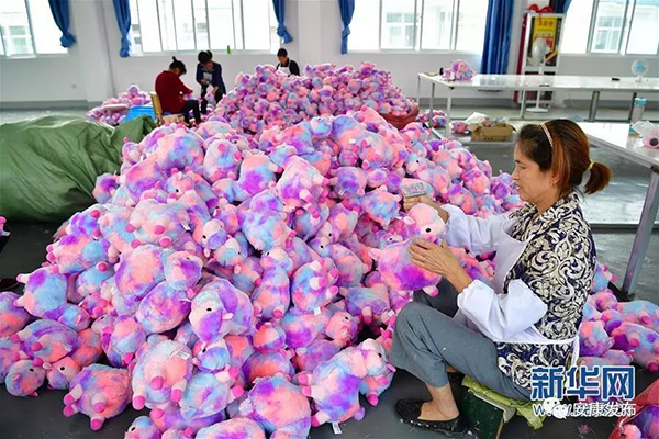 地處秦巴山區(qū)腹地的安康市是集中連片特困地區(qū)。通過近年來大力實施移民搬遷,安康市先后使近百萬人口告別深山、搬進(jìn)集中安置社區(qū)的新居。過去分散的村民不斷聚集轉(zhuǎn)變?yōu)樾滦娃r(nóng)村社區(qū)居民,這使毛絨玩具等勞動密集型產(chǎn)業(yè)有了適合發(fā)展的土壤。
