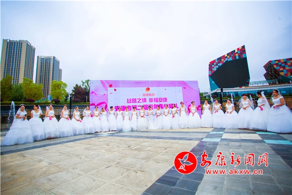 來自絲路沿線城市西寧、西安、渭南、商洛、山西呂梁、江蘇徐州和安康各縣區(qū)的25對(duì)新人在全城矚目下舉行婚禮儀式,在中國(guó)最吉祥的地方“安康”,不僅為自己留下難忘一刻,更用實(shí)際行動(dòng)踐行著移風(fēng)易俗社會(huì)主義新風(fēng)尚。