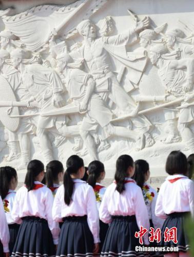 資料圖:少先隊(duì)員瞻仰人民英雄紀(jì)念碑。 中新社記者 廖攀 攝