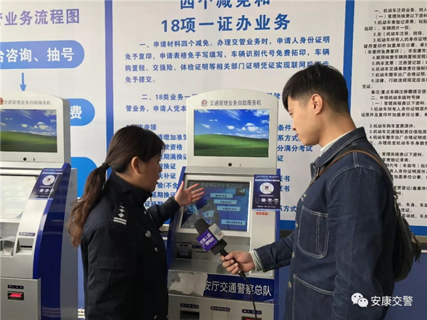 為全面貫徹落實(shí)公安部“放管服”改革新舉措,安康市公安局交警支隊(duì)車管所新購(gòu)自助機(jī)三部,方便群眾自助辦理簡(jiǎn)單的機(jī)動(dòng)車、駕駛證、違法處理、信息查詢及變更等業(yè)務(wù),車主和駕駛員本人(系統(tǒng)不支持代辦業(yè)務(wù))只需持身份證、行駛證、駕駛證,當(dāng)場(chǎng)采集車主信息、辦理業(yè)務(wù)。車管所大廳自助服務(wù)設(shè)備目前能自助辦理的業(yè)務(wù)有8項(xiàng)::補(bǔ)領(lǐng)行駛證、換領(lǐng)行駛證、補(bǔ)領(lǐng)號(hào)牌、換領(lǐng)號(hào)牌、遺失補(bǔ)駕駛證、損壞補(bǔ)駕駛證、期滿換駕駛證(體檢醫(yī)院必須是聯(lián)網(wǎng)的13家醫(yī)院),信息查詢及變更。