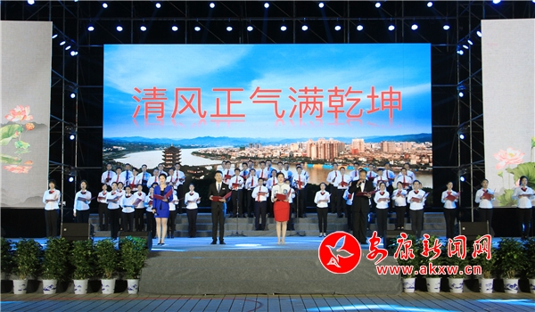 金秋時(shí)節(jié)的金州廣場,人潮如涌。“要讓清風(fēng)吹大地,要讓正氣滿人寰······” 本次文藝展演在氣勢磅礴的《唱響正氣歌》大合唱中拉開序幕。整臺展演緊緊圍繞“清風(fēng)頌廉助脫貧”主題,分揚(yáng)清風(fēng)、頌廉風(fēng)、塑民風(fēng)三個(gè)篇章,共演出合唱、漢劇、歌舞、小品、詩朗誦、民歌小戲、沙畫等藝術(shù)形式的節(jié)目14個(gè),其中絕大多數(shù)為市縣區(qū)紀(jì)委監(jiān)委、文旅局、脫貧辦組織新創(chuàng)作的精品節(jié)目。《蓮開盛世》《你是一縷清風(fēng)》《好久沒到這方來》等歌舞表演美輪美奐、震撼人心;《鑰匙與心鎖》《缺啥扶啥》等小品緊貼脫貧攻堅(jiān)主題和農(nóng)村百姓生活,生動活潑、妙趣橫生;詩朗誦《清風(fēng)正氣滿乾坤》和情景講述《忠誠干凈擔(dān)當(dāng)》等節(jié)目展示了紀(jì)檢監(jiān)察干部的無私奉獻(xiàn)和擔(dān)當(dāng)作為;收尾的大型漢劇《清風(fēng)頌廉助脫貧》,將展演活動推向高潮。近兩個(gè)小時(shí)的演出精彩紛呈,贏得陣陣掌聲,使觀眾品味到廉政文化精神大餐。在展演現(xiàn)場同時(shí)舉辦的主題圖片展,圍繞決戰(zhàn)貧困、攻堅(jiān)先鋒、警鐘長鳴等內(nèi)容,設(shè)置了30余塊展板,吸引過往群眾紛紛駐足觀看。