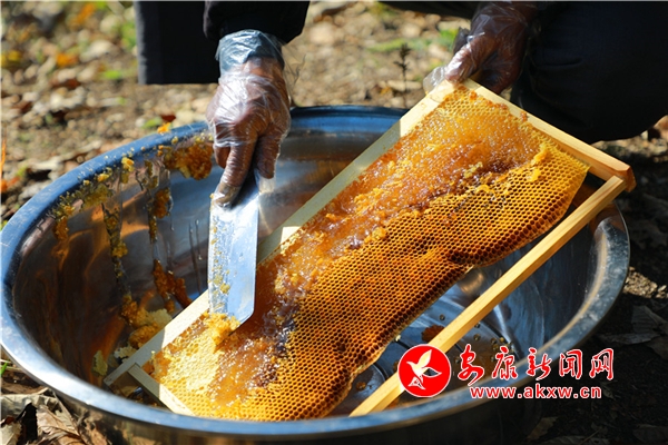 采蜜時節(jié)是涂應輝最高興的時候,抖蜂、割蜂蠟、搖蜜…雖然累,但心里特別甜。“再過一段時間,我們就要對蜂箱的內(nèi)外進行保溫御寒了。只要蜜蜂成功越冬,明年春天百花蜜出來了,老百姓又能增收了。”涂應輝樂呵呵的說道。