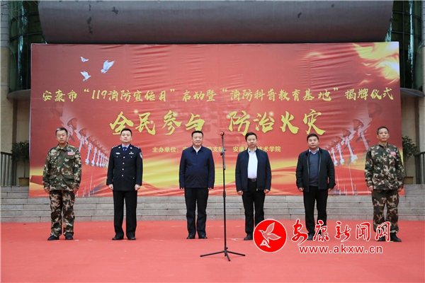 安康新聞網(wǎng)訊(通訊員 劉紀(jì)麟 莊濤)11月6日下午,安康市2018年“全民參與、防治火災(zāi)”消防宣傳月活動(dòng)暨“消防宣傳科普教育基地”揭牌儀式在安康職業(yè)技術(shù)學(xué)院舉行,副市長(zhǎng)、市消安委主任楊尚偉出席并宣布活動(dòng)啟動(dòng)。市消安委辦公室主任、市公安局副局長(zhǎng)周斌等出席啟動(dòng)儀式。