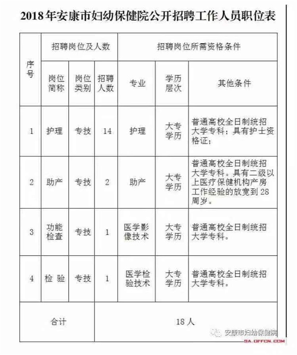 經(jīng)安康市衛(wèi)計(jì)局批準(zhǔn),安康市婦幼保健院院2018年擬公開(kāi)招聘護(hù)理等專業(yè)技術(shù)人員。現(xiàn)將有關(guān)事項(xiàng)公告如下: