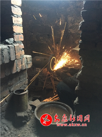 今年七八月份氣溫正是三四十度的時候,黃師傅還是一如既往地早早來到鐵鋪里,圍著火爐,打造鐵器。中午時分在漢陰工地搞運輸?shù)膬鹤狱S金超,得知黃師傅還在鐵鋪圍著火爐轉(zhuǎn),利用中午休息時間趕回鐵鋪,“這么熱的天,連命都不要了。”隨即熄火爐、斷電源、收工具,載著黃師傅回了家。